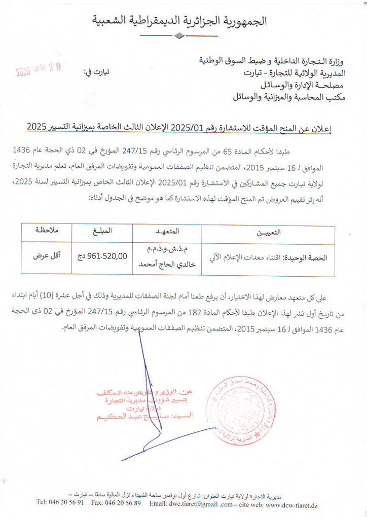 إعلان يخص كافة المتعاملين الاقتصادين الذين يمارسون نشاط الإنتاج، تجارة بالجملة أو التجزئة لكل المستلزمات ذات صلة بالدخول المدرسي